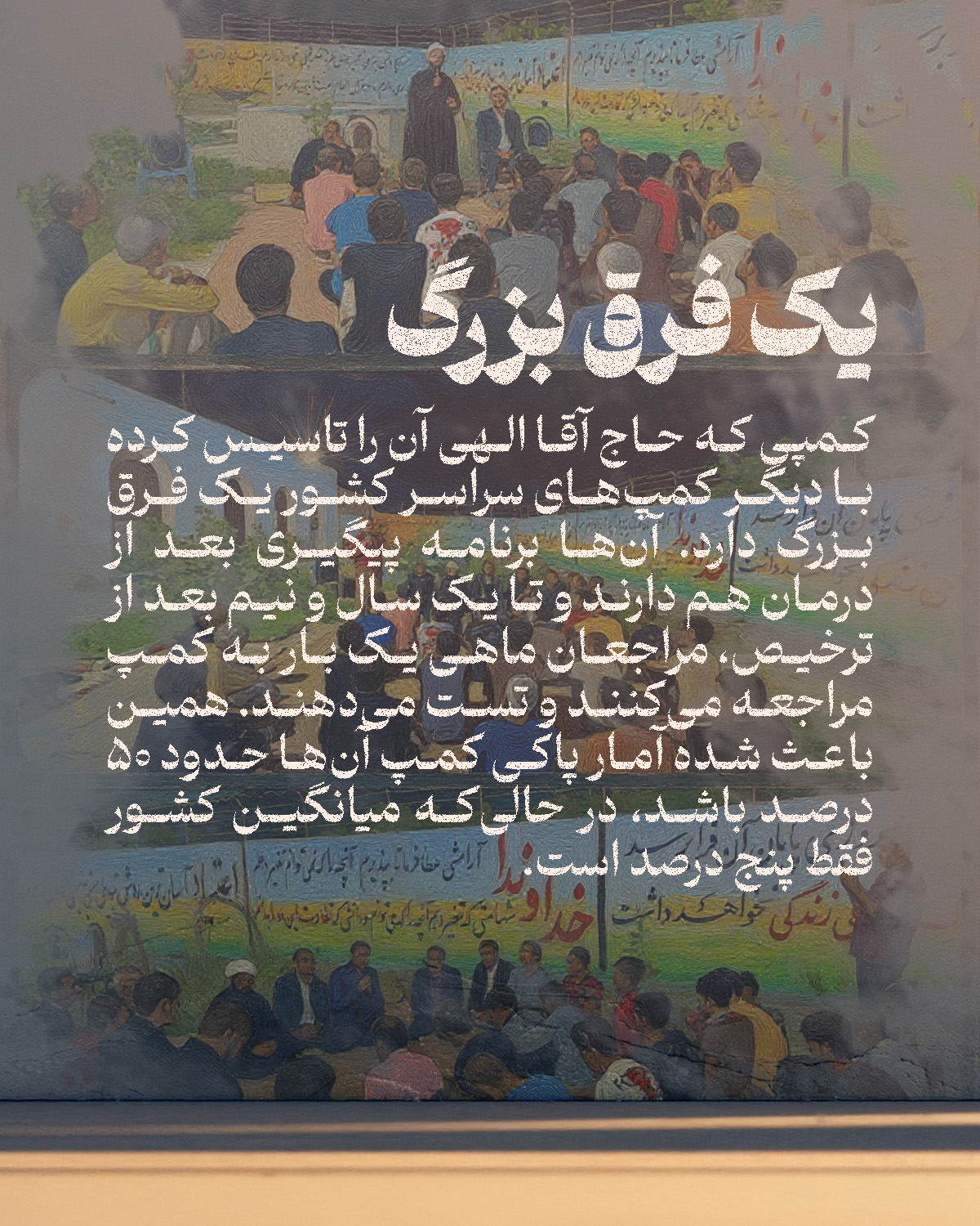 به گزارش روابط عمومی سازمان تبلیغات اسلامی، حجت‌الاسلام الهی، امام محله روستای گلشن شهرستان طبس، با یک نذر ساده مسیر تازه‌ای در زندگی خودش و ده‌ها انسان گرفتار اعتیاد باز کرد. او با حمایت خیرین، کمپ ترک اعتیادی را راه‌اندازی کرده که حالا به پناهگاه ده‌ها نفر از بهبودیافتگان از دام مواد مخدر تبدیل شده است. در این شماره از نشریه دیجیتال، مروری داریم بر مسیر شکل‌گیری این حرکت مردمی و تلاش‌های این روحانی جوان برای حل مشکلات محله.