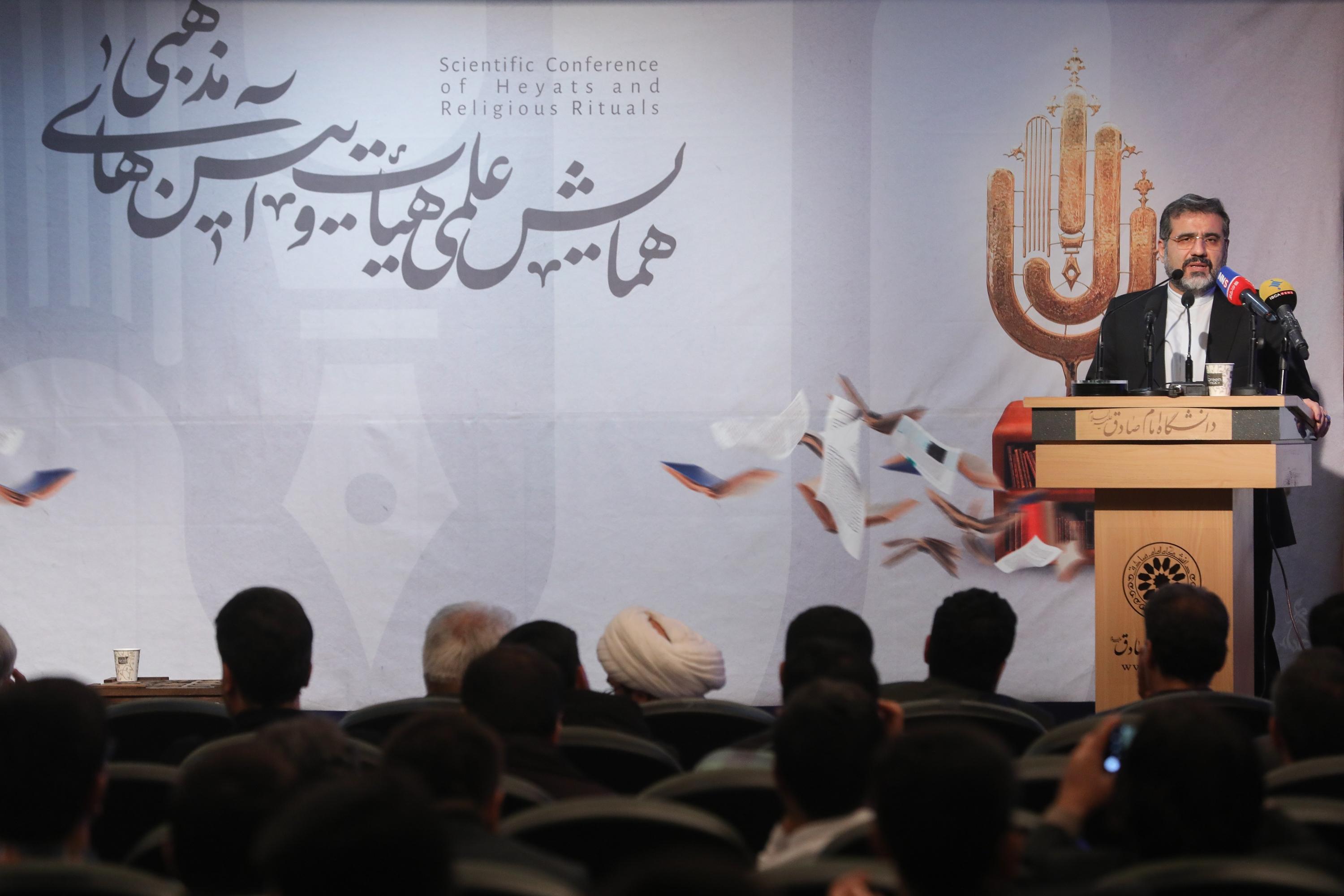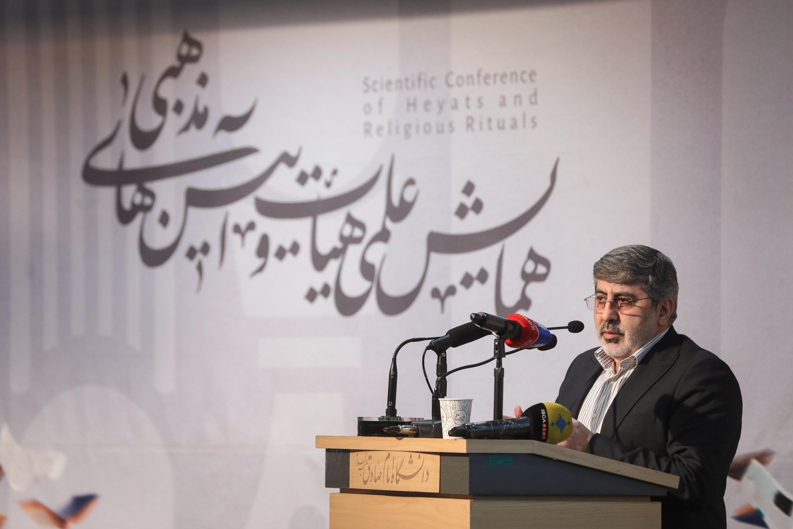 مراسم اختتامیه نخستین همایش علمی هیأت و آئینهای مذهبی بعدازظهر امروز پنج شنبه ۲۶ بهمن ماه ۱۴۰۲ با حضور و سخنرانی محمد مهدی اسماعیلی وزیر فرهنگ و ارشاد اسلامی، محمد مهدی طهرانچی رئیس دانشگاه آزاد اسلامی در تالار آیت الله مهدوی کنی (ره) دانشگاه امام جعفر صادق (ع) برگزار شد.