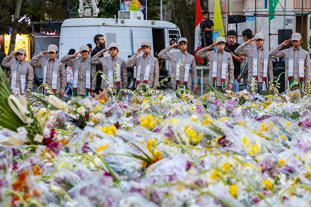 مراسم ادای احترام به شهدای مقاومت و سید مقاومت شهید سید حسن نصرالله با حضور گروههای مختلف مردمی در میدان فلسطین برگزار شد.