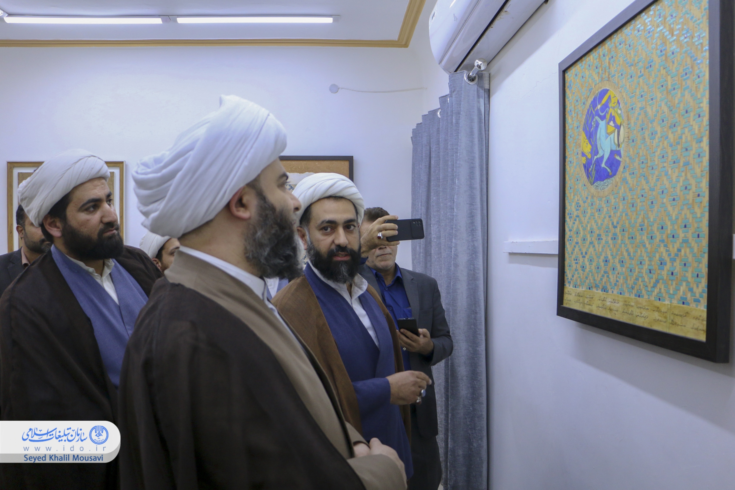 حجتالاسلام والمسلمین محمد قمی، رئیس سازمان تبلیغات اسلامی در سفر خود به استان خوزستان از تابلوی «حجاب» اثر هنری حجت الاسلام والمسلمین آرش نیکنژاد، هنرمند خوزستانی در گالری ریم اهواز رونمایی کرد.