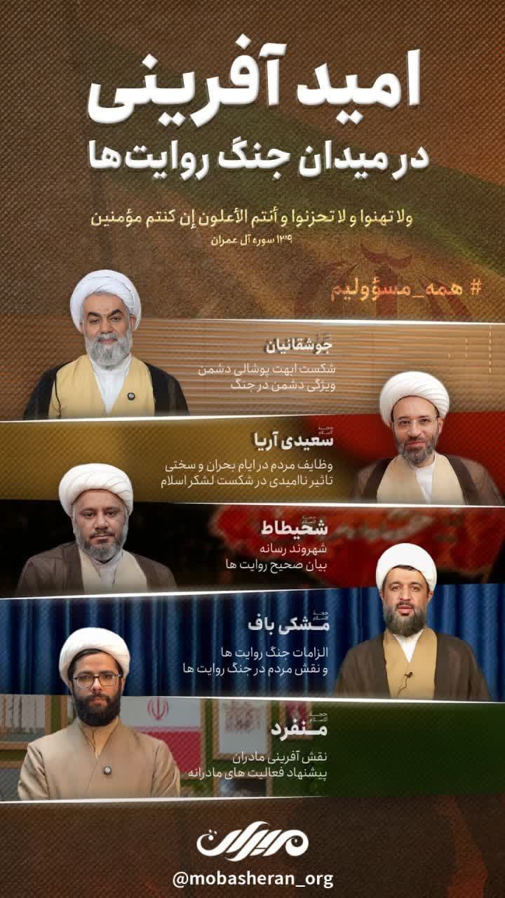 مجموعه «مبشران» با ابتکاری راهبردی و الهام از منویات رهبر معظم انقلاب، دورهای نوآورانه با عنوان «امیدآفرینی در میدان جنگ روایتها» برگزار کرده است.