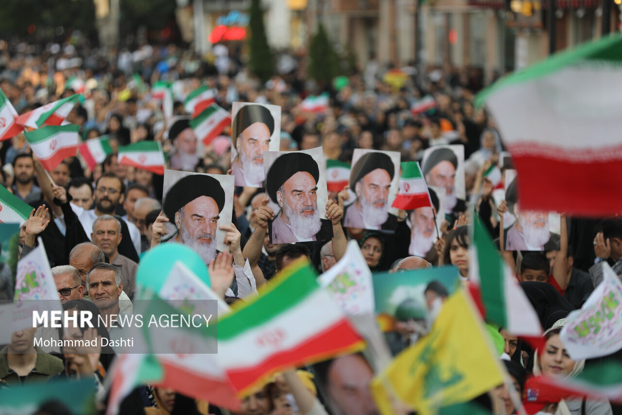 "ایران؛ ذوالفقار علی" کے نعرے کے ساتھ غدیر کا کلومیٹروں لمبا جلوس ہفتے کی شام ۱۴ جون ۲۰۲۵ کو بیک وقت پورے ملک میں منعقد ہوا۔